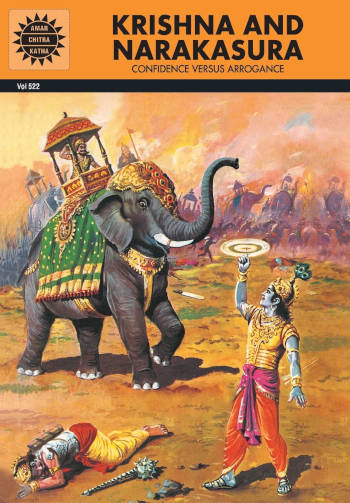 Indra was at his wit’s end – the impertinent demon Narakasura had stolen his mother’s earrings! Lord Krishna, always helpful, agreed to confront the enemy. But seated on Garuda, his trusty eagle, and accompanied by the gentle Satyabhama, would Krishna be able to overcome Narakasura’s formidable defences? Would his gleaming discus ever find its mark?