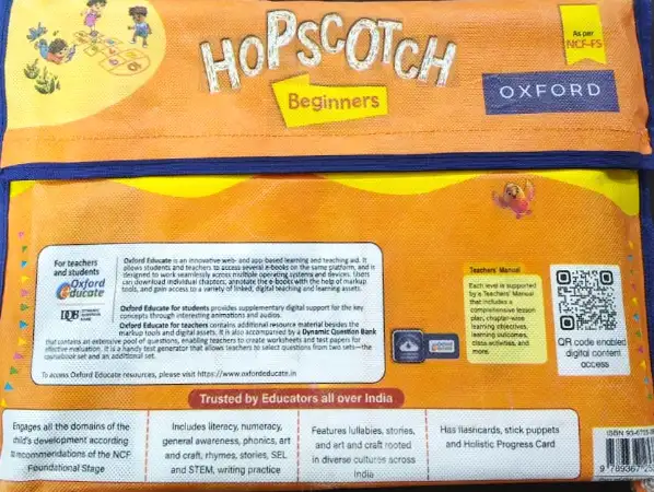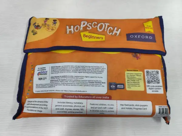 Hopscotch is a simple, practice-oriented, and skill-based pre-primary course. It focuses on engaging all the domains of the child’s development according to the recommendations of the National Curriculum Framework (NCF) Foundational Stage. This series has been designed especially to cater to the unique learning requirements of the little ones. Hopscotch comprises three separate kits across Beginners, Level 1, and Level 2 and encompasses key content domains that include Literacy, Numeracy, General Awareness, Phonics, Art and Craft, Rhymes, Stories, SEL and STEM, and writing practice. Keeping with the recommendations of NCF-FS about being rooted to our culture, the series presents the little ones with lullabies, stories, and art and craft that are native to Indian traditions and curated from various parts of our country.