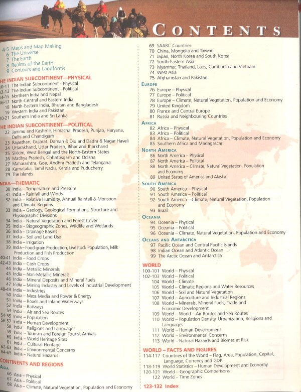 • Includes separate physical and political maps of India and the continents