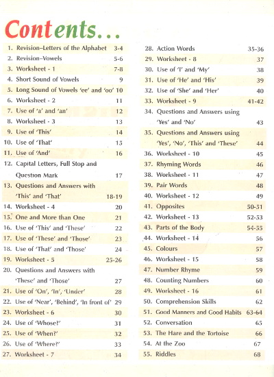 Stepping Stone In English – Pre Primer and Primer is a set of two books meant for children of LKG and UKG. The books are child – friendly and are an ideal stepping stone for the learning of English language. The children are introduced to letters of the alphabet, vowels and consonants, words, phonic drill, colours, numbers etc. in a well-graded manner and through eye-catching illustrations. Ample exercises and revision worksheets have been given to help the child revise the concepts learnt. These books will go a long way in promoting the psychomotor, cognitive and affective skills of the child.