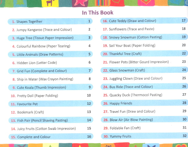Little Hands is a set of seven books for children of preprimary and primary levels. The aim of these books is to enable the children to learn various art and craft techniques without the aid of an instructor the essential drawing techniques progress for starting points of lines and simple shapes to more complex figures. The books focus on the development of art and craft skills. Children can use the skills taught here to go beyond the examples and create their own unique work. We hope that the books will inspire the children to realize there creative potential.