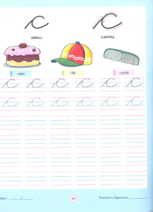 Real Strokes Capital Letters – A Book of Cursive Writing. It is primarily aimed at developing good hand-writing skills in children with interesting information and illustration.